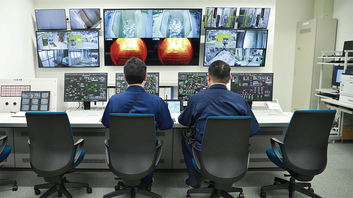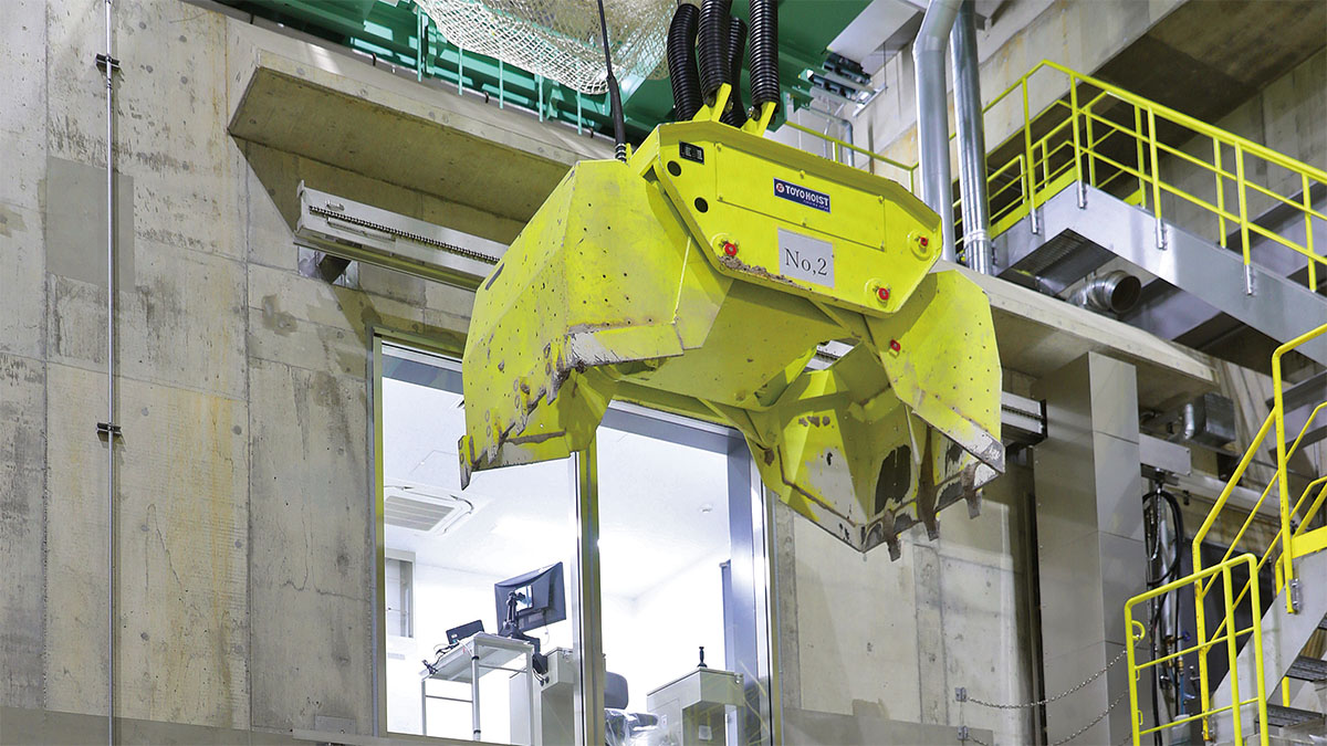 10焼却灰は一旦ピットに貯留され、その後、灰クレーンによりトラックに積み込まれ、搬出されます。