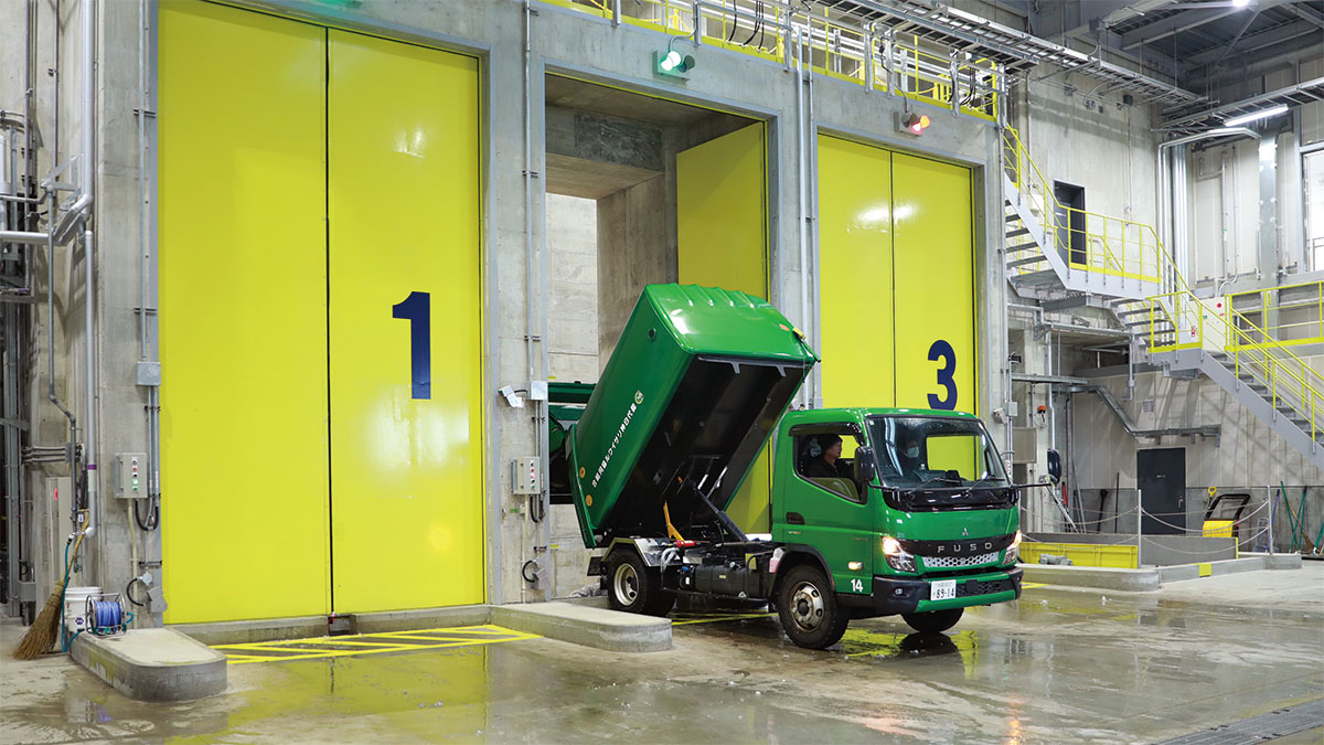 1ごみ収集車はごみ計量機で、集めてきたごみの重量を量ります。