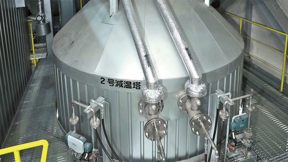 7高温の排ガスに水を直接吹き付けて、処理しやすい温度にします。