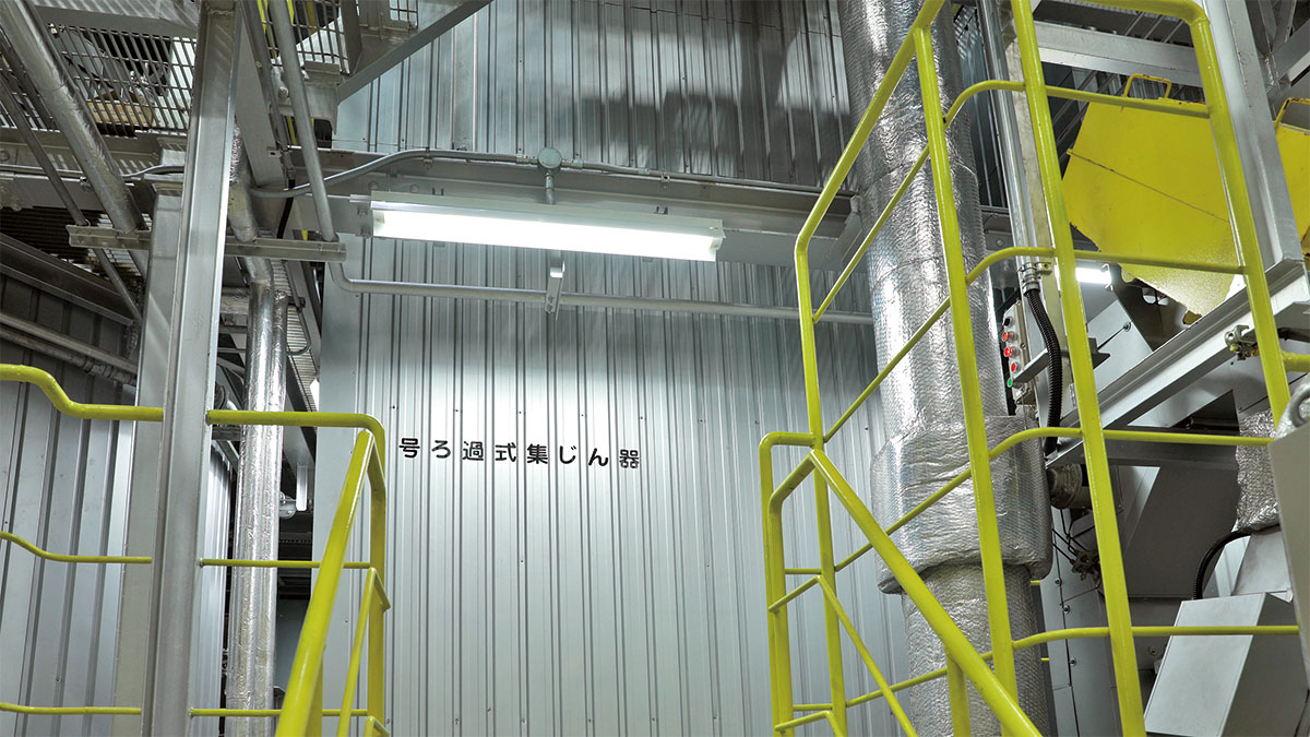 8ろ布というフィルタで、ばいじんなどの有害物質を取り除き、無害化します。